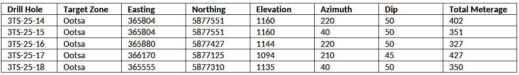 - Hole 3TS-25-14: 17.20 metres averaging 3.20 g/t silver, 0.20% lead and 0.22% zinc